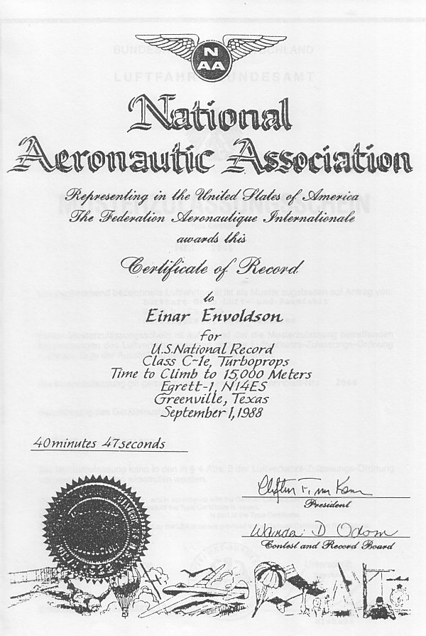 In der Klasse C-1e stellt die EGRETT-1 drei Weltrekorde auf :