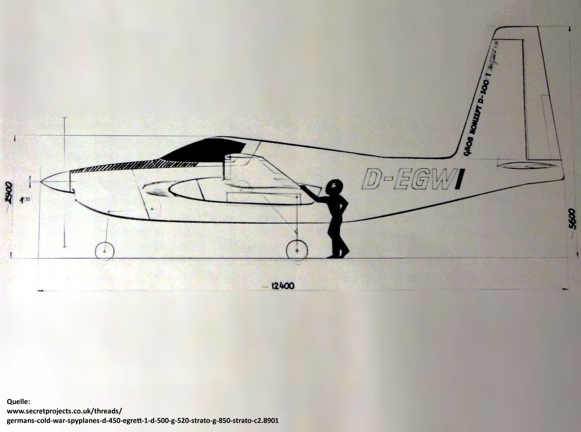 Der nun als D-500 (Registrierung D-FGEE) bezeichnete Pre-Prototyp wird am 07.09.89 auf dem Luftwaffenfliegerhorst Pferdsfeld der Öffentlichkeit vorgestellt. Im Gegensatz zum POC (Proof-Of-Concept) "EGRETT-1" besitzt die D-500 "EGRETT-2" ein komplettes Einziehfahrwerk und ist vom Konzept her ein völlig neues Flugzeug. Am 28. April wird der Bau des zweiten Flugzeugs, des sogenannten Prototypen, beauftragt.