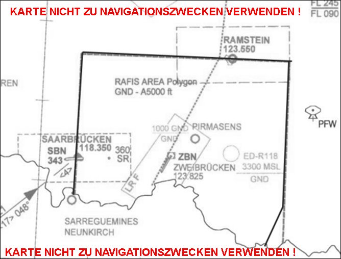 Außerhalb der Aktivierungszeiten der RAFIS Mandatory Area war unkoordiniertes Einfliegen von militärischen LFZ in den Luftraum "F" von Zweibrücken (EDRZ) bis in eine Flughöhe von 3.600 ft verboten, wenn der Luftraum "F" aktiviert war.